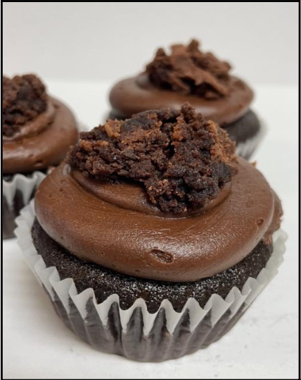 Our chocolate cupcake filled with edible brownie batter, topped with fudge icing and a crumbled brownie. A chocolate lovers dream!